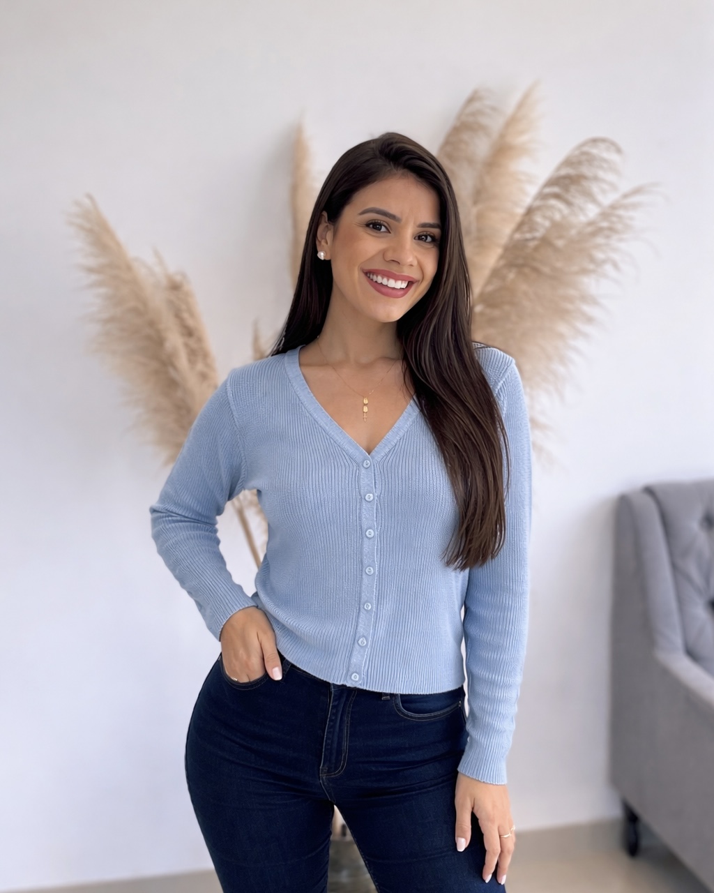 Esse cardigan em tricô acrílico tem um caimento lindo no corpo, botões frontais, toque super confortável, e aquecimento para suas frescos, ideal para usar tanto fechado quanto aberto!
