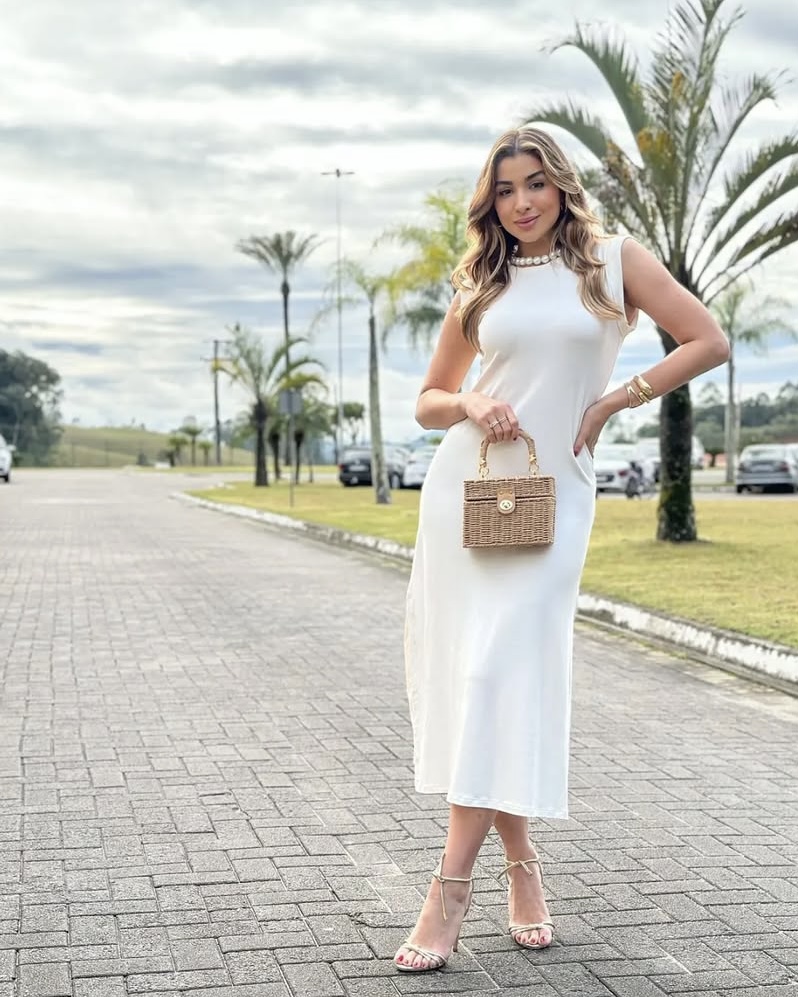 O Vestido midi casual tem comprimento midi, confeccionado em viscose, toque macio e similar ao algodão. O caimento dele é bem fluido, ele possui fenda nas duas laterais, que proporciona elegância e sensualidade na medida certa. É uma peça perfeita, que transmite feminilidade e sofisticação.